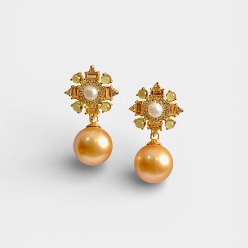 Golden South Sea Pearl Dangling Earrings