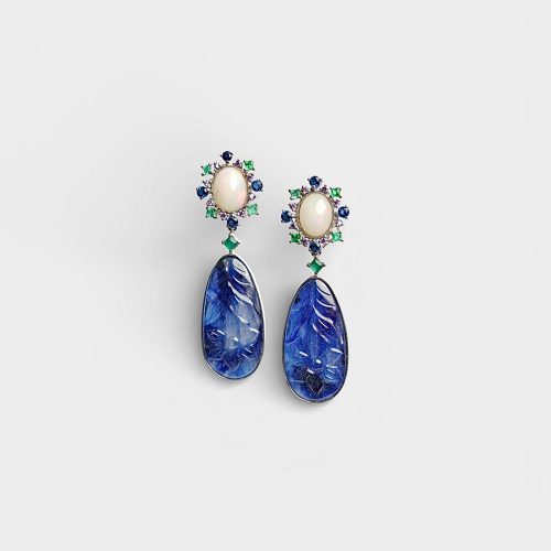 Ethiopian Opal with Blue Sapphires Dangling Earrings
