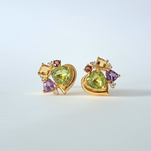 Heart-shaped Peridot Earring with Muli-colored Gemstones Accents
