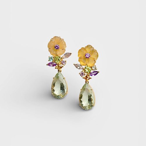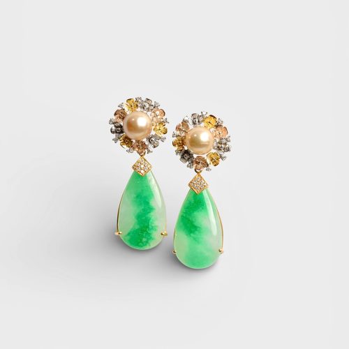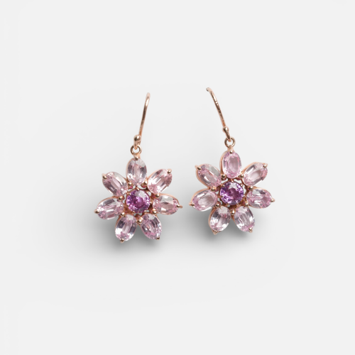 Pink Sapphire Earring with Diamonds and Multicolored Gemstones Side Accents